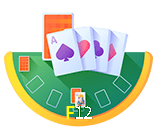 Interaja com um crupiê real e outros jogadores enquanto joga o clássico jogo de cartas Blackjack. O objetivo é ter um valor de mão mais próximo de 21 do que a mão do crupiê, sem ultrapassar 21.